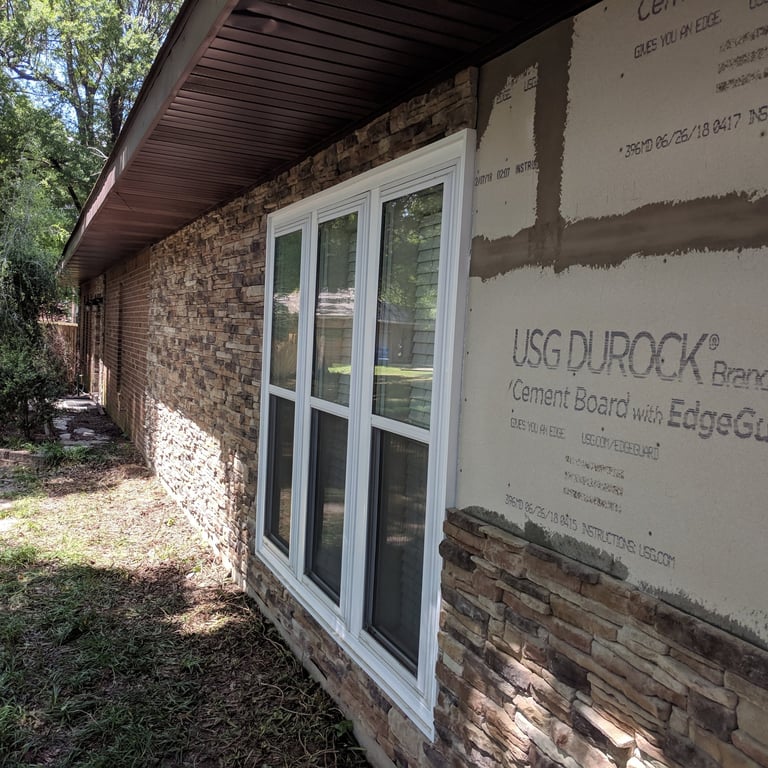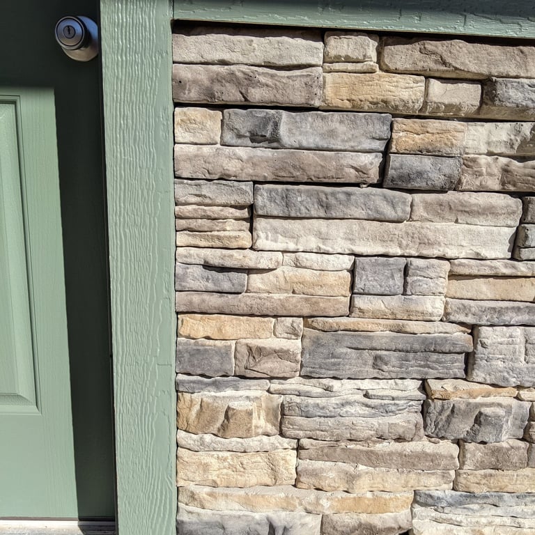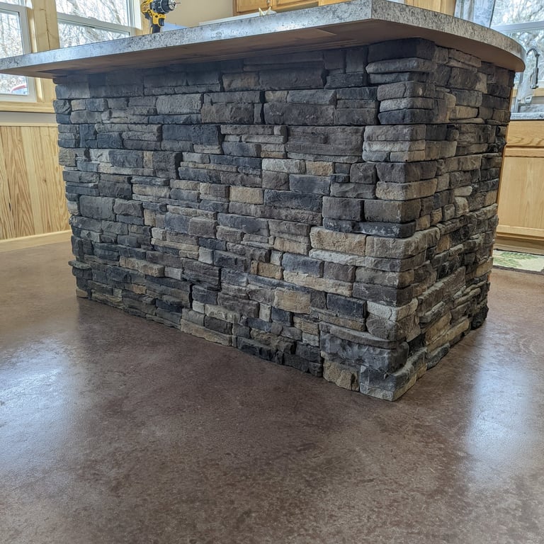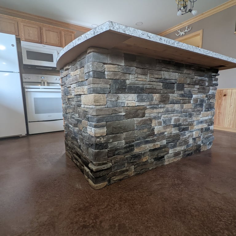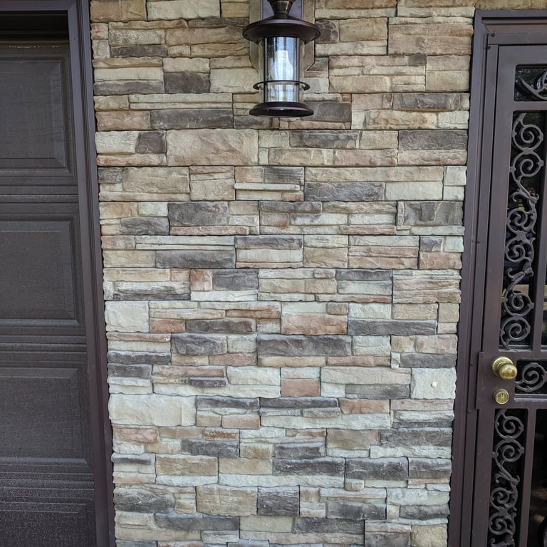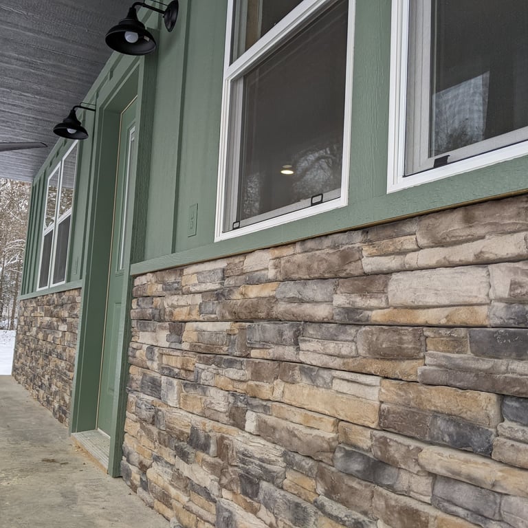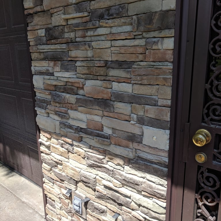 One of the best ways to mix up the look of your homes exterior is to add variation with manufactured veneer stone. There are many color options available and its also durable. Although we typically install the stone on exterior surfaces, many of our clients request it inside their homes for a more rustic look.